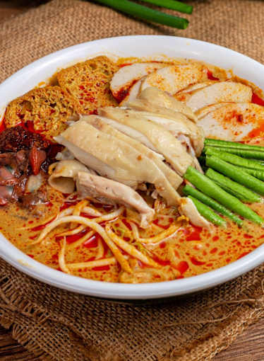 pork shrimp vegetable curry sauce Thin rice noodles.